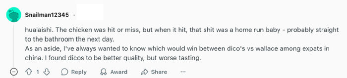 而且,但凡是对华莱士稍有了解的,其实也早给自己打了预防针,就比如在reddit上,“华莱士开到了美国”一贴下,许多对中国了解的老外纷纷将自己所了解的“喷射战士”科普给其他人。