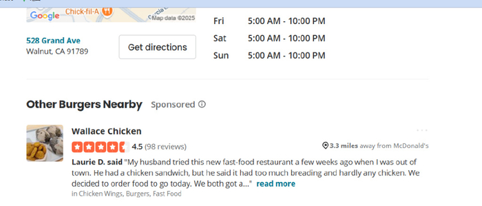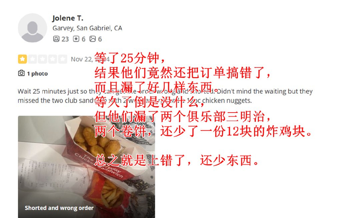 这位大姐发出如此感慨也在情理之中。其实美式快餐在当地是差评重灾区,同样在核桃市的麦当劳、肯德基,评分都是垫底水平,基本都是各种吐槽和谩骂,比如这家距离华莱士大约3.5英里的麦当劳就恶评如潮。