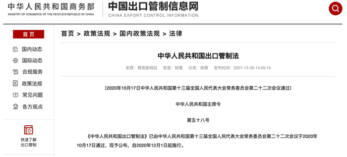 首先说明,两用物项这个词,并不是中国的首创。我国是直到2020年10月,被美国步步紧逼的大背景下,才出台了《中华人民共和国出口管制法》,正式地、明确地将两用物项纳入了出口管制范围。