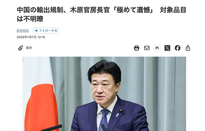 日本经济新闻:《中国の輸出規制、木原官房長官「極めて遺憾」 対象品目は不明瞭》