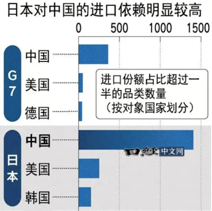 其次,日本的国家规模和自然禀赋,就决定了它没办法和中国走一条路。一个从粮食到能源,再到制造业所需要的高端原材料,都极度依赖外部进口的国家,面临中国的顶格出口管制,是毫无还手之力的。