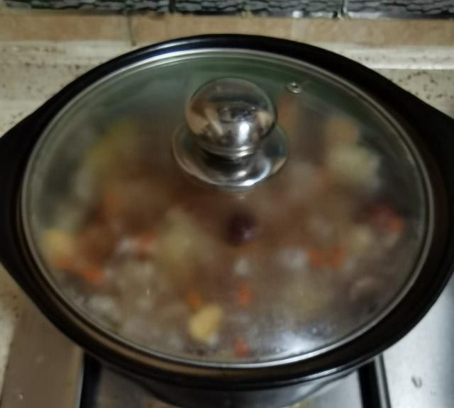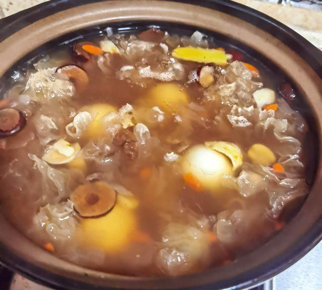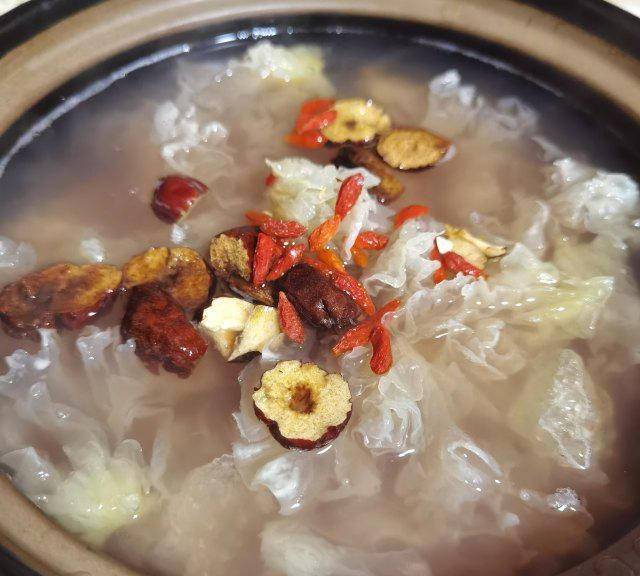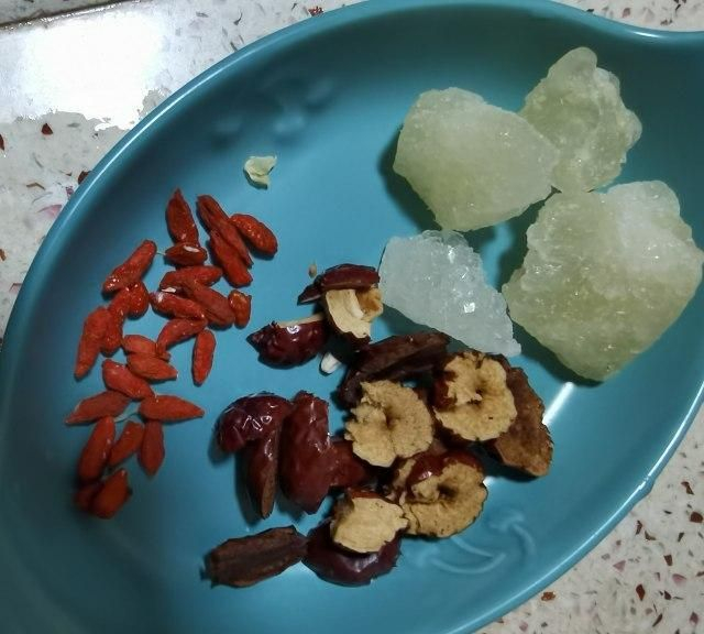 第8步、加入银耳、冰糖、红枣、枸杞。