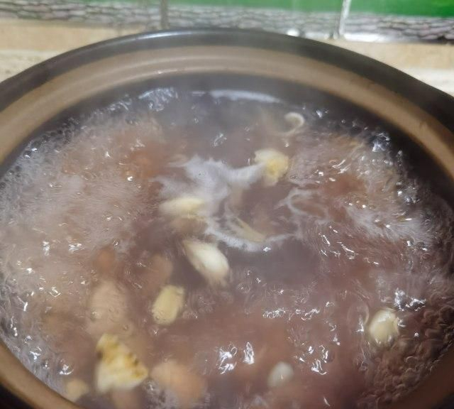 第1步、莲子去芯,所有干货加水浸泡1小时。