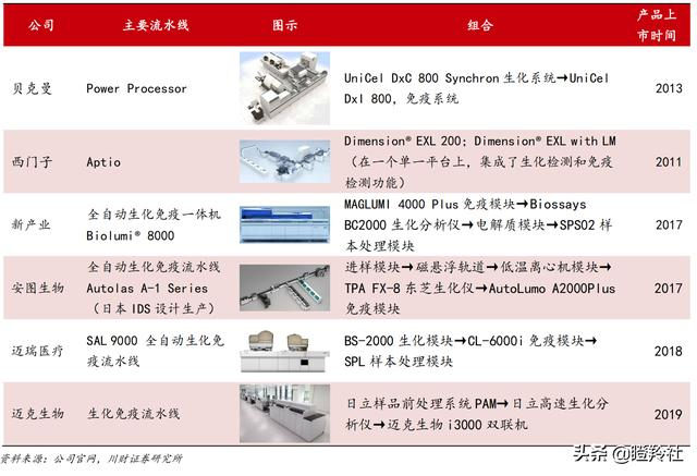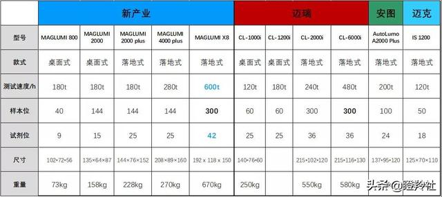 2、产品竞争力:从国内四大厂家发光仪产品细节来看,新产业、迈瑞的仪器布局较全,桌面式、低速、小型仪器服务二级及以下小型医院;落地式、超高速大型仪器适配三甲医院、第三方医学实验室等。