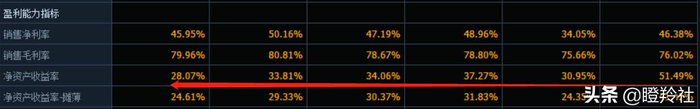 净资产收益率虽然有下滑趋势,但仍然保持接近30%的水平,还算不错。