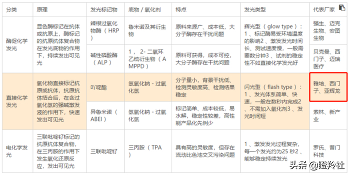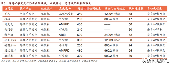 在技术平台上,主流的发光技术平台各有优缺点,不能说技术谁优谁劣。如果考究检测的速度,新产业=亚辉龙>安图生物,若考究稳定性,安图生物>亚辉龙>新产业。
