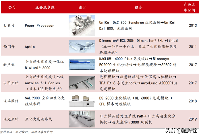 ● 流水线比较:在流水线层面,亚辉龙的系统产品材料不多,但由于流水线技术壁垒高,目前国内厂商仅占据国内市场2%份额,各国产厂商的产品都是靠“整合”得来的,工艺水平不存在根本性差异。