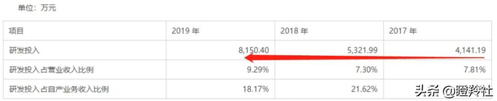 2017-2019年公司研发费用分别为4141.19万元、5321.99万元和8150.40万元,逐年上升,占营业收入比重分别为7.81%、7.30%和9.29%。