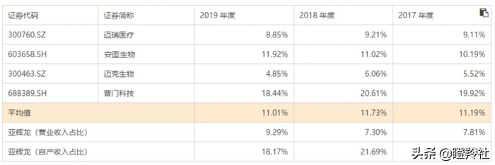 与同行业竞争对手比较,研发费用占主营收入比例较低于平均值,但占自产业务收入的比重分别为29.83%、21.69%和18.17%,与不存在代理业务的普门科技相当,也具备一定的参考意义,总体看尚可。