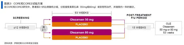 CORE/CORE2是两项2:1随机对照研究,分别纳入617名和446名患者,患者接受4周一次50mg和80mgTryngolza的治疗,评估与安慰剂相比sHTG患者(TG>500毫克/分升)的疗效,主要终点为第6个月时甘油三酯相对于基线的百分比变化,次要终点为第6个月和第12个月时血脂和脂蛋白参数的百分比变化、第12个月时急性胰腺炎(AP)事件等,患者在整个治疗期间需接受标准的降血脂治疗。