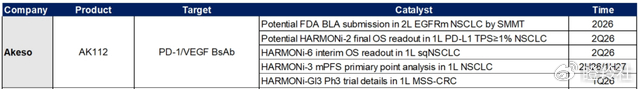 尽管三生SSGJ-707和信达IBI-363合作伙伴在今年刚启动全球三期注册临床,其中SSGJ-707一线治疗非小细胞肺癌、结直肠肠癌三期临床将在2029-2030年完成,但值得注意的是:康方生物的AK112要在2026年迎来大量关键里程碑,这对于三生的SSGJ-707后续验证有着举足轻重的重要意义。