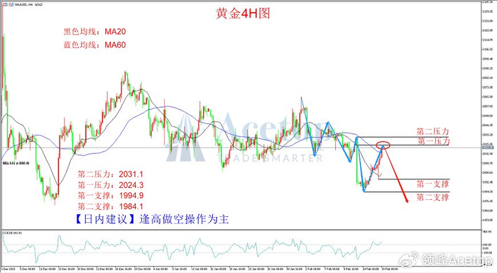 美国1月季调后非农就业人口数据表现亮眼,1月未季调CPI年率也超预期,显示美国经济仍然具有较强韧性,存在软着陆的机会,打击了市场此前唱衰美国经济的预期,这些数据对于美元指数具有提振作用,对黄金则利空。