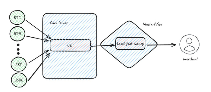 哪怕不用稳定币抢夺链上交易媒介的地位,链下所有的支付都绕不开持牌支付机构的胁迫。像Master和Visa拥有全世界最广泛的支付接口,迫使数字加密储值卡的发行商必须按照它的规矩来:用美元来结算。只要发卡机构能做到标准的KYC,AML,把世界各类加密资产合规地转化为美元,使用美国的金融机构就能够替持币者完成全球支付。Binance的支付、Dupay的支付,都是采用这样的形态去完成的。这个流程里,数字加密资产仅仅作为金融资产,或者储值手段而存在,在支付环节中无足轻重。