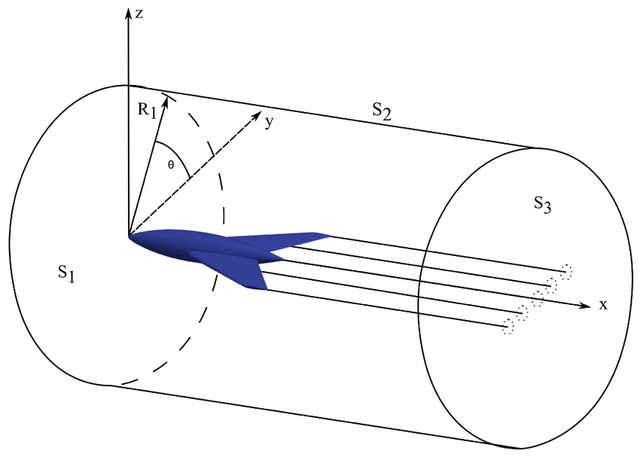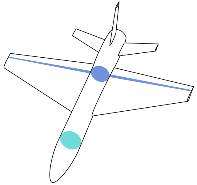 也就是说如果机身只有部分只有机身那么可以在这个部分计算机身横截面积,但如果这段机身有机翼,那么也得计算机翼的横截面积(图上蓝色部分)。