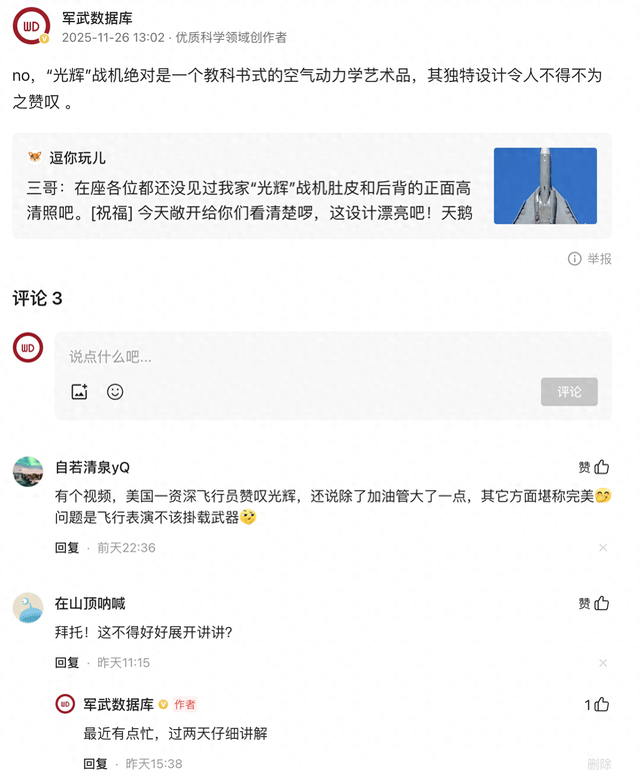 当你真正理解面积律、超临界机翼、跨音阻力和激波位置这些概念之后,再回头去看“光辉”,你就很难再用“丑”“怪”“低端”这些标签去评价它了。你看到的,就已经不再是外形,而是一套完整、严谨且高度自洽的空气动力学逻辑。