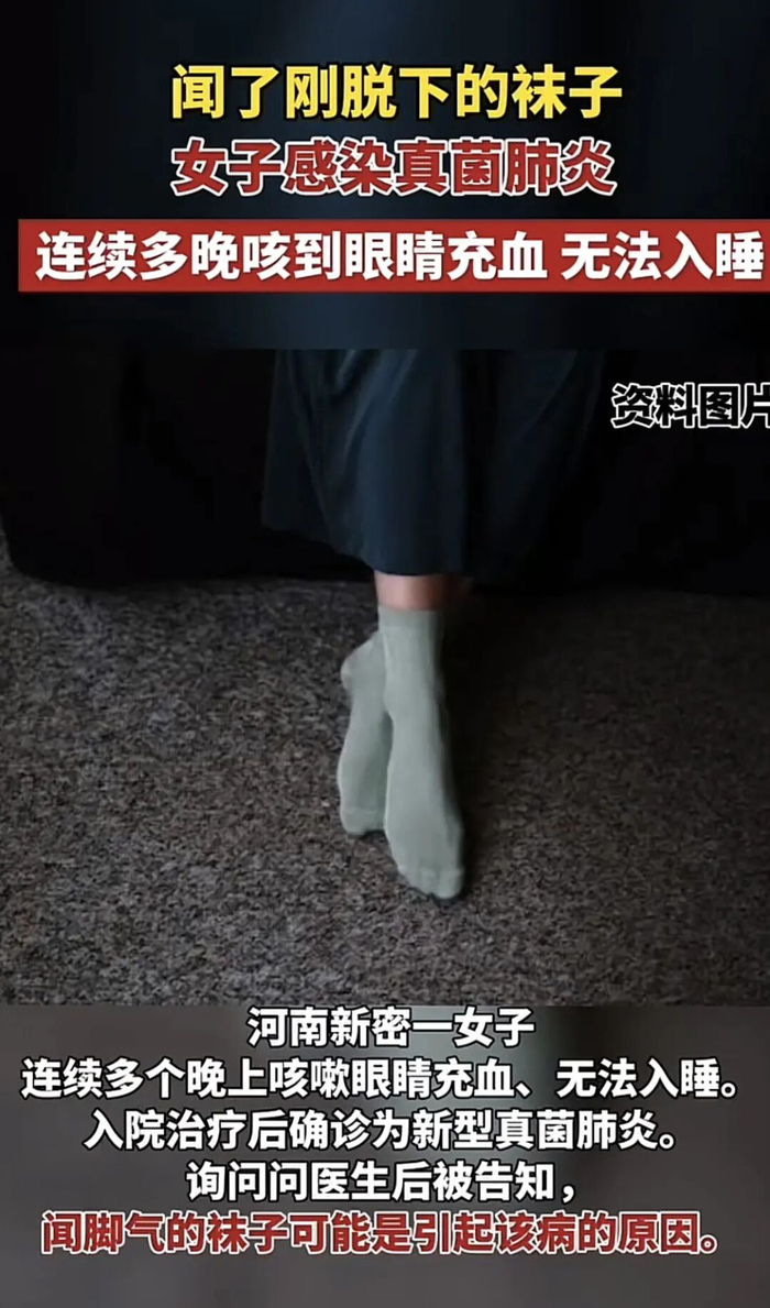 ▲图片来源:某音怎么闻闻臭袜子就真菌感染了呢?因为臭袜子上的真菌很可能通过「闻」「吸」进入上呼吸道,除了闻臭袜子,霉味重的物品、阴暗潮湿的环境,比如地下室等,也都需要注意。
