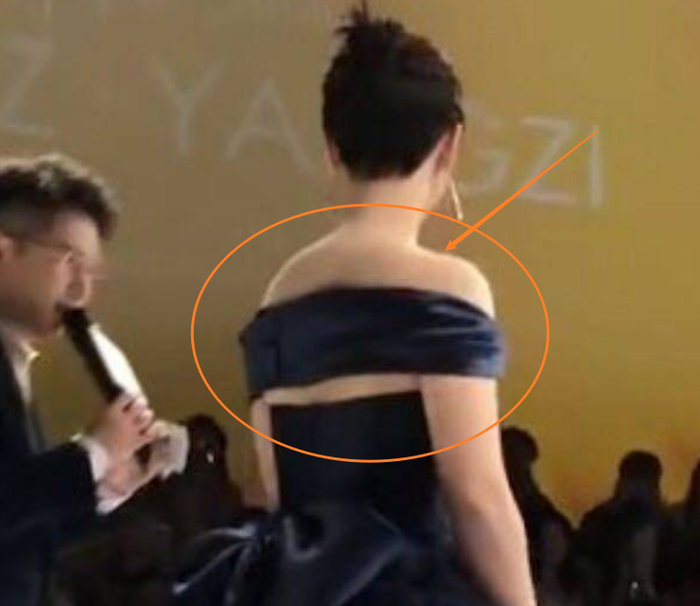 由于杨紫这次出席活动选择的礼裙是露肩的款式,所以能够很清楚的看到她的肩膀线条,不管是从正面还是侧面亦或是背面来看,杨紫的身形都显得有厚,肩膀会给人一种肉肉的感觉。