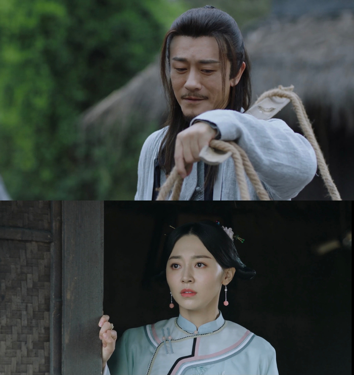 前几集刚刚看过苗人凤为了找寻胡一刀的遗孤,把自己的妻小托付给好兄弟田归农,哪知道前脚刚走,好兄弟就趁虚而入,对自己的妻子体贴入微,百般殷勤,最后苗夫人南兰留下一纸诀别书,直接进了田府。随后苗人凤找到两人对质,又被南兰的辩解说得哑口无言,心中有恼也有愧,于是决心同妻子断绝关系,但从她手里带走了自己的女儿。