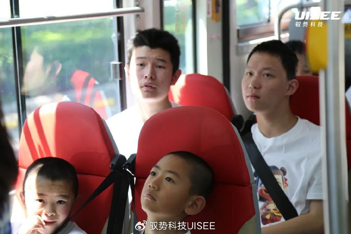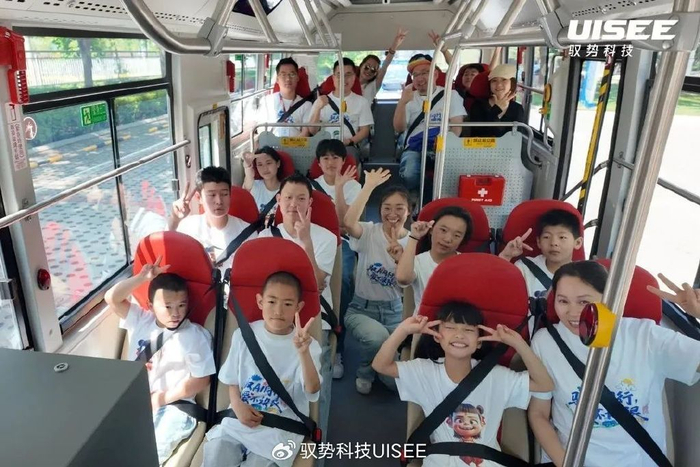 随后,孩子们第一次坐上无人驾驶巴士,有的好奇、有的兴奋。“请系好安全带,无人驾驶巴士即将出发。”随着安全员的一键启动,无人驾驶巴士驶出公交站点,开始自主运行。