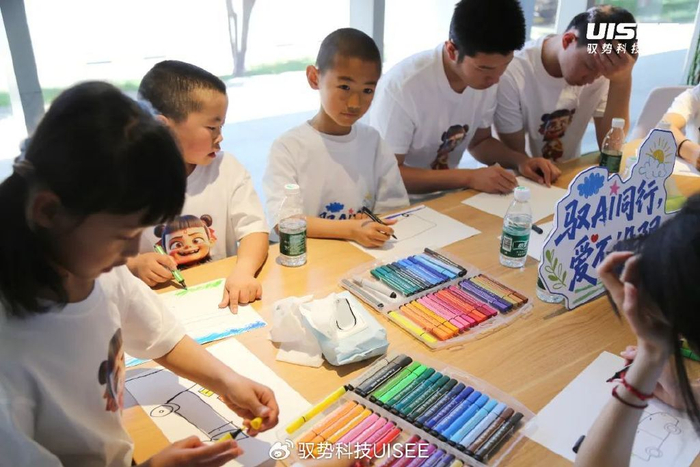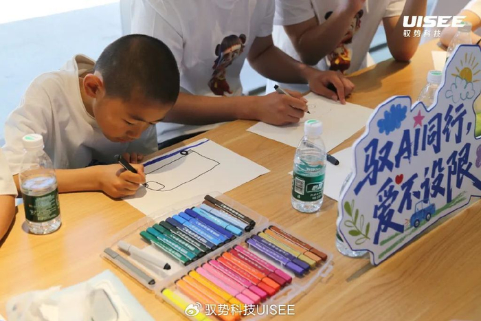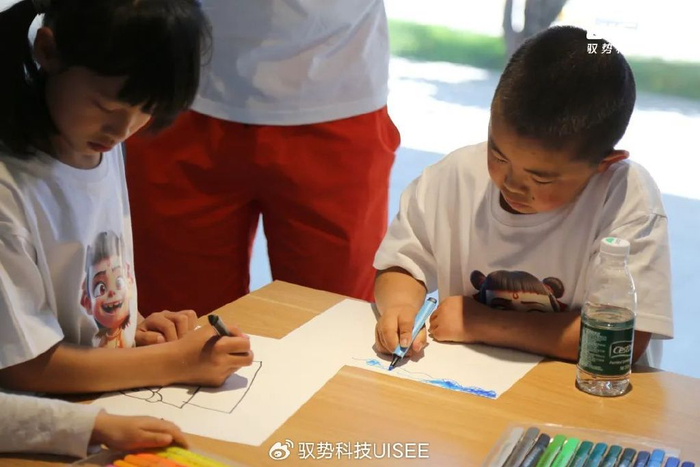 在互动环节,驭势志愿者邀请孩子们发挥天马行空的想象力,用绘画展现自己对“未来出行”的憧憬。