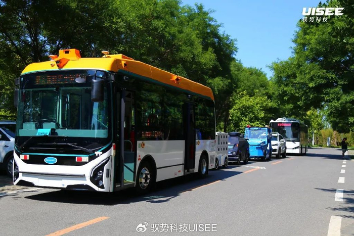 在中关村房山园内,驭势科技多款无人驾驶车辆整齐列队,没有普通汽车的轰鸣,这些AI司机用闪烁的灯光和显示着“无人驾驶”字样的屏幕迎接孩子们的到来。TA们第一次近距离接触无人驾驶车辆,都认真倾听着驭势志愿者对于每个车辆的讲解。