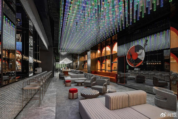 2023年开业的西安高新丽芮酒店,以“秦腔遇上摇滚”为主题,将地方戏曲与潮流音乐融合于空间动线中,成为不少外国客人拍照留念的“打卡点”。