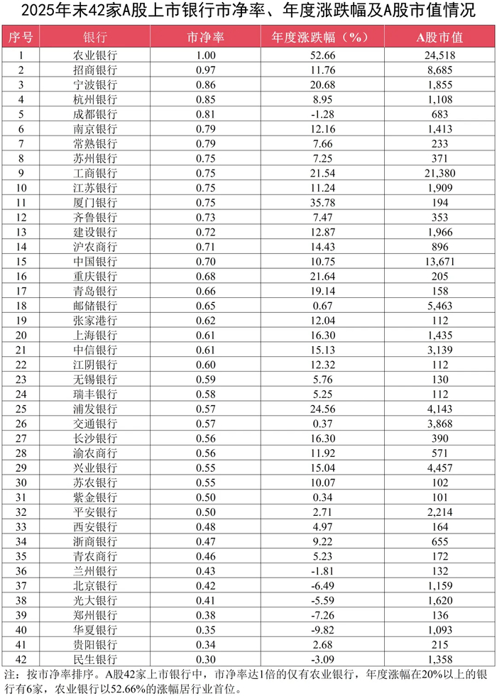 市场最能客观的反映银行的经营业绩和在投资者眼中的价值。今天是2026年的第一天,我们不妨利用假期,盘点总结一下2025年上市银行在资本市场的表现。