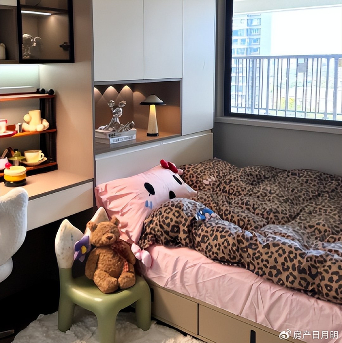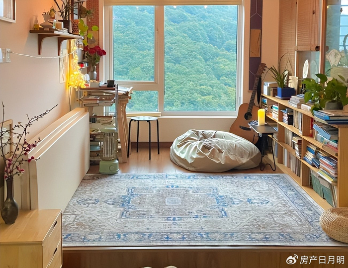还有人遇到物业不允许改飘窗的问题,就顺势把飘窗做成榻榻米。220厘米长、80厘米宽的空间,刚好解决了睡觉和收纳需求,小次卧也能放下1.5米的睡眠区域,房间反而显得更敞亮。