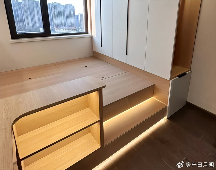 有的家庭干脆放弃传统双人床,选择榻榻米设计,把床、衣柜、书柜连成一个整体。白天可以在上面看书、休息,晚上铺好床品就能睡觉,卧室直接变成多功能空间。