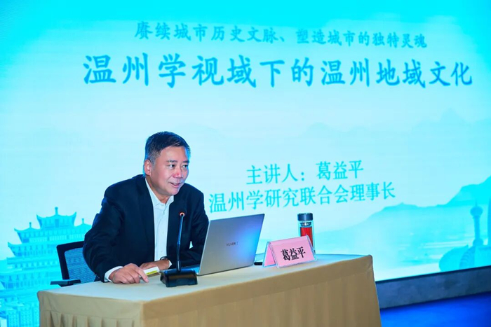 活动中,温州市温州学研究联合会理事长葛益平作题为《赓续城市历史文脉、塑造城市的独特灵魂——温州学视域下的温州地域文化》的专题讲座,聚焦“温州人精神”的内涵与发展历程,系统梳理了其时代价值、历史脉络与文化根基。