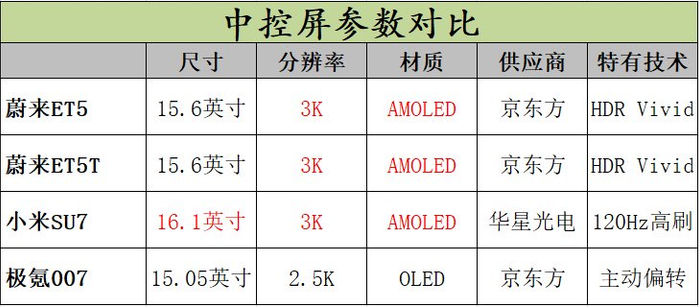 通过简单对比可以看到,除了3K高分辨率、100%广色域和支持HDR Vivid外,新ET5/ET5T的中控屏幕尺寸也较为适中,没有一味追求巨大。