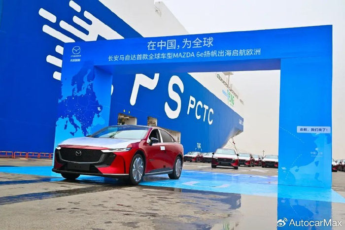 今年4月,600辆MAZDA 6e从南京工厂下线,通过滚装船销往欧洲市场。作为马自达首款基于EZ-6打造的全球化纯电车型,这款车型使用了大量中国供应商的零部件。
