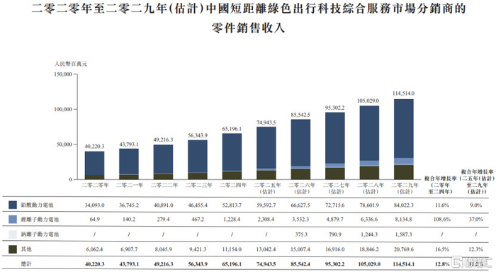 中国短距离绿色出行科技综合服务市场分销商的零件销售收入,来源:招股书