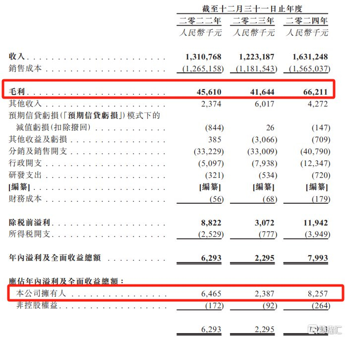 财务数据方面,2022年、2023年及2024年(报告期),快驴科技的收入分别为13.11亿元、12.23亿元、16.31亿元,净利润分别为630万元、229.5万元、799.3万元,毛利率分别约为3.5%、3.4%及4.1%。