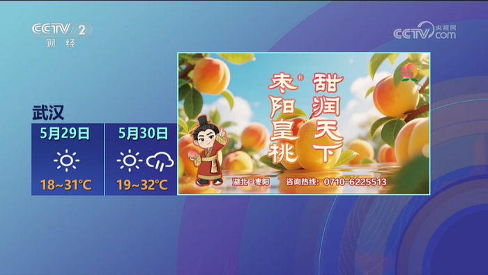 湖北省枣阳市,素有“中国桃之乡”的美誉。近日,产自湖北枣阳的特色农产品——枣阳皇桃,正式登陆央视CCTV-2《第一时间》天气预报栏目。此次重磅亮相,不仅为枣阳皇桃品牌搭建起更为广阔的展示舞台,更标志着这一承载着枣阳独特地域优势与深厚农耕文化的优质水果,正以全新姿态大步迈向全国乃至全球市场,开启品牌传播与产业升级的全新征程。
