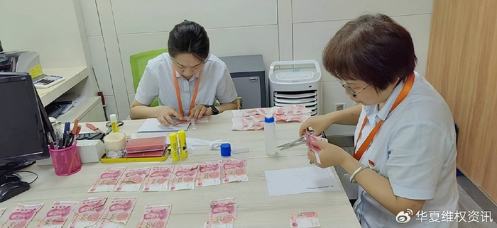 近日,一位老年客户拿着一张报纸急匆匆来到阳泉农商银行义井分理处询问,称由于自己没注意报纸里有现金,无心把纸币都撕坏了。工作人员打开报纸一看,纸币已经变成了一截一截的碎片。见残币比较多,且大堂内已经有多名客户正在等候办理业务,为节约业务办理时间,工作人员随即将其引导至另一窗口,并安排专人通力合作拼接碎纸币,一张一张重新黏贴好。整理完毕后,又引导老大爷到柜台办理,工作人员快速将残币清点完并为其兑换现金。