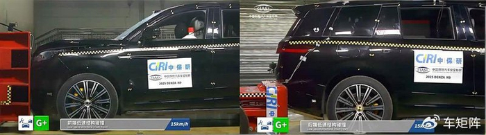 官方数据显示:腾势N9在前四项的测试中均获得“优秀+(G+)”,在新能源汽车专项安全指数中获得“优秀(G)”评价,其中在耐撞性的测试中先后以15km/h前后低速碰撞、64km/h正面25%偏置碰撞及50%偏置碰撞等科目展开,腾势N9均获得优异表现,在车外行人安全及辅助安全测试中行人与骑行者自动紧急制动系统(AEB VRU)测试获满分,并且在新能源专项测试如托底与刮底等项目均全部通过。