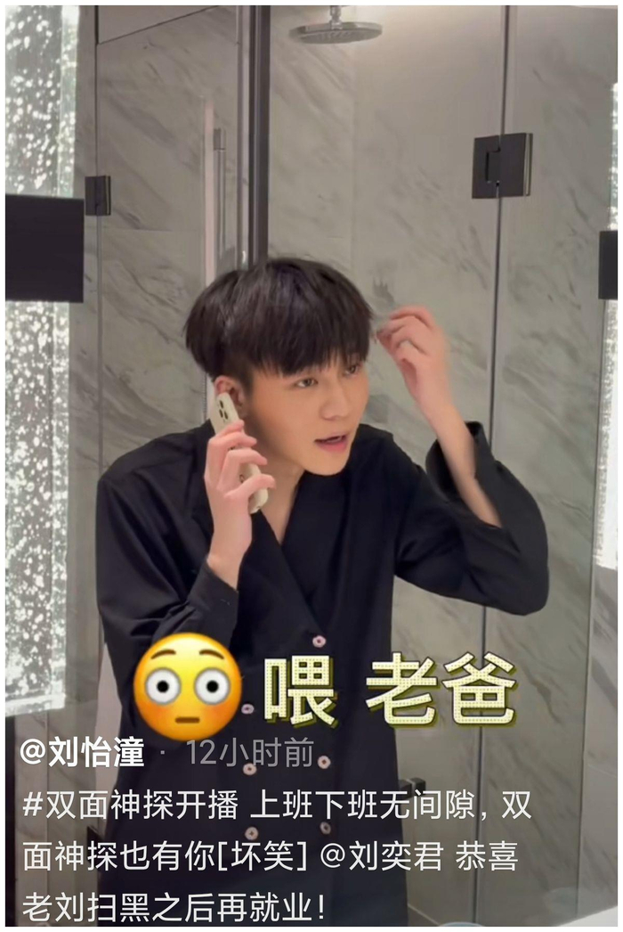 9月7日,刘奕君,之子刘怡潼,在社交平台上拍摄了一段视频,展现了父子之间罕见的互动。