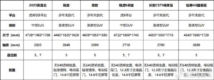 而反观8-10万价位区间的同级车型,合资品牌大多为小型SUV,即便是自主品牌,也多以紧凑型SUV为主,这些车型不仅空间相对狭小,对大家庭出行不够友好,而且载物空间也有限,难以满足多样化的使用需求。