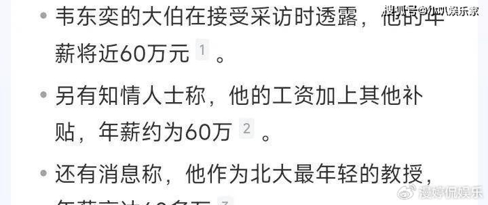 韦神是北大数学系老师,网上说他年薪六十多万,但每个月就花两三百。他平时吃的都是馒头配白水,食堂里大鱼大肉他都不碰,就吃最便宜的菜。有人看他视频说话有点大舌头,说是营养不良造成的。