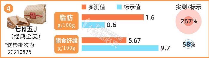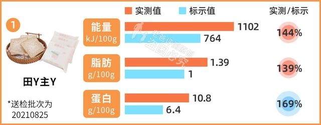 就在前段时间一款网红全麦面包“翻车了”,碳水化合物、能量的实测值远高于产品包装上的标示值。