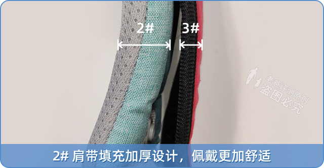 经过比较,我们发现 2、5、7 号这三款,不仅重量相对较轻,而且肩带和腰带的宽度大,肩带也进行了填充加厚,实际体验后的舒适性也更好。