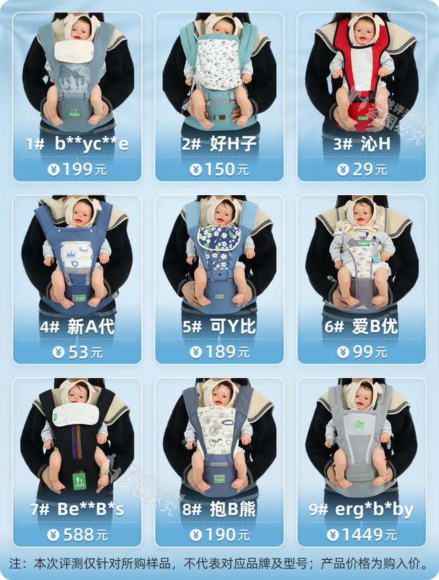 这次我们选购了 9 款市面上热销的婴幼儿腰凳,价格从几十到上千的不等,分别从耐久力、安全性、舒适性三个方面进行评测,并在最后总结出了使用建议,希望可以帮助大家选到可以放心陪伴宝宝成长的安全舒适的腰凳。