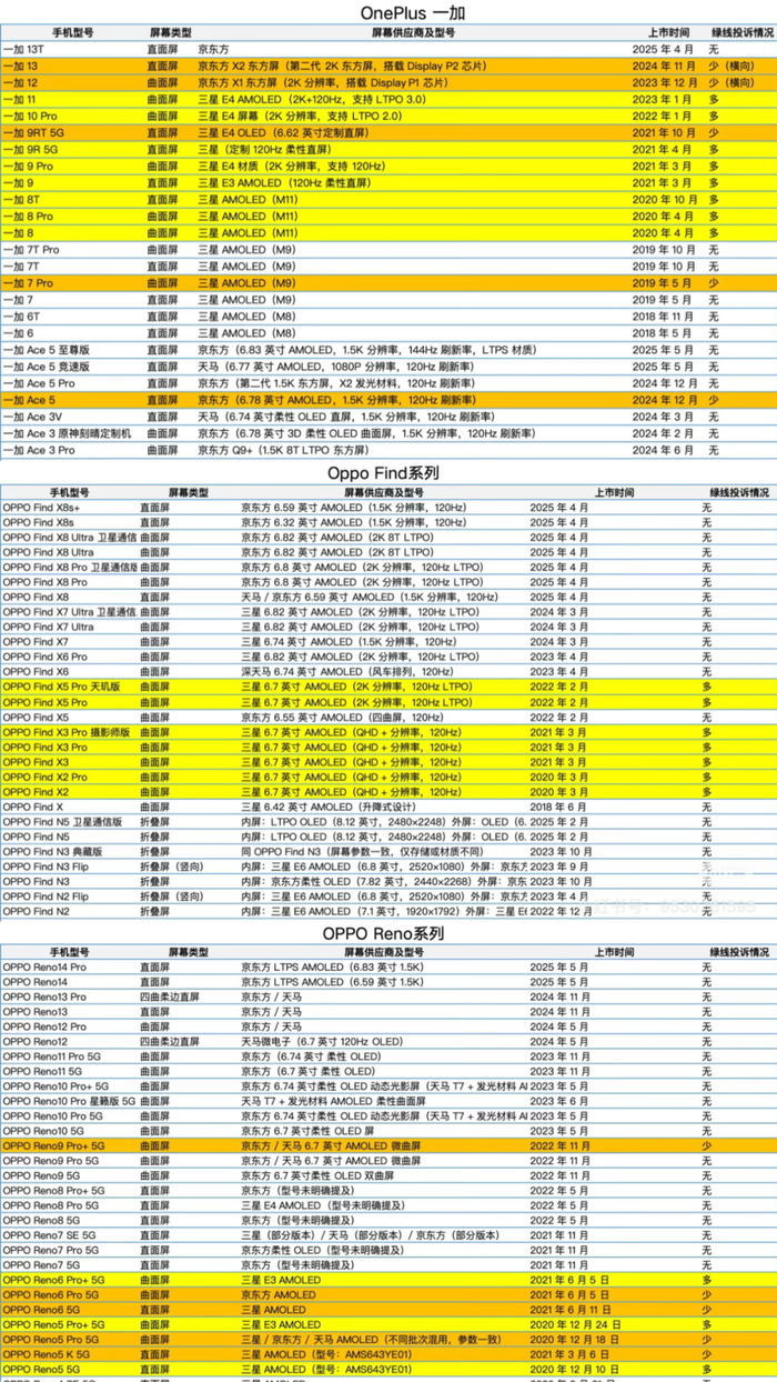 绿线门爆发后,OPPO在发布会上官宣“屏幕革命”,宣布联合面板厂商投入超10亿元自研屏幕产线,以解决后续产品的屏幕质量问题。但短期内仍难摆脱对三星的依赖——Find X9系列仍采用三星E7材质,导致高端机型品控风险持续。