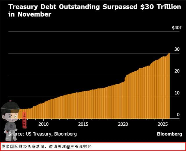 王爷说财经讯:历史性突破!美国未偿国债第一次超过30万亿美元!