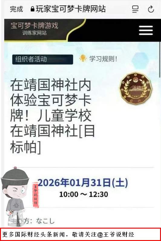 宝可梦官网突然上线了一则活动预告:1月31日,靖国神社,宝可梦卡牌儿童教室。