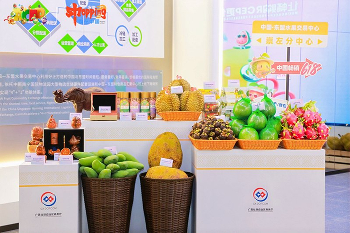 现场展出的东盟国家水果。主办方供图此次活动围绕“东盟水果及RCEP优品·溯源之旅、汇聚广西、通达中华、全民共享”4个篇章进行,来自越南、文莱、柬埔寨、印度尼西亚等8国使节通过现场或视频推介本国水果及RCEP优品;南宁、钦州、崇左市,自治区商务厅、文化和旅游厅,中国食品土畜进出口商会和国内电商平台、跨境电商企业代表分别进行了推介;此外,现场发布中国(广西)—东盟水果大模型,并对一批东盟水果采购项目、RCEP优品落地加工项目、东盟水果全国销售项目进行签约,发布构建中国—东盟人工智能合作生态圈倡议。