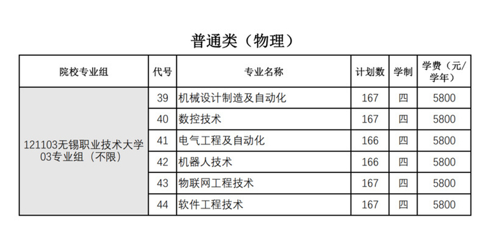 今年,无锡职业技术大学首批设置机械设计制造及自动化、数控技术、电气工程及自动化、机器人技术、物联网工程技术、软件工程技术等6个职业本科专业,共招生1000人,全部面向江苏省内。