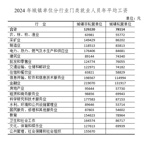 6月19日,江苏省统计局发布2024年江苏省城镇单位就业人员年平均工资情况。数据显示,2024年,江苏省城镇非私营单位就业人员年平均工资为129220元,城镇私营单位就业人员年平均工资为78114元。
