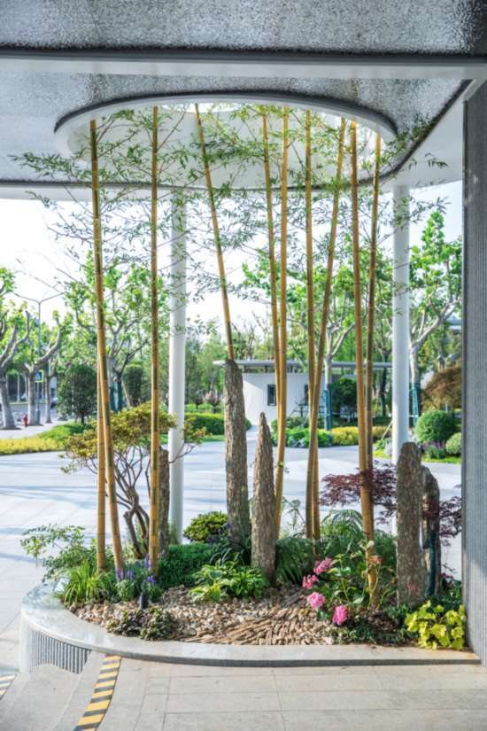 站体端头匠心点缀的修竹群落,其苍翠挺拔之姿与纯白云顶相映成趣,在虚实相生间营造出"竹映云光"的东方美学意境。